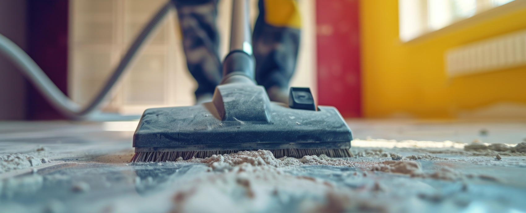 Aspiradores industriales con filtros HEPA eliminan el polvo de yeso de suelos, paredes y falsos techos, evitando que vuelva a depositarse.